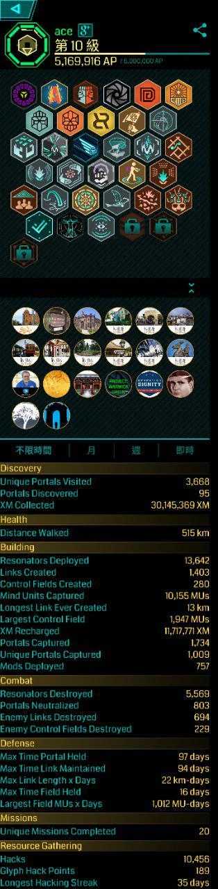 John Hanke 的 Ingress 遊戲帳號,看得出來他應該沒什麼時間玩遊戲